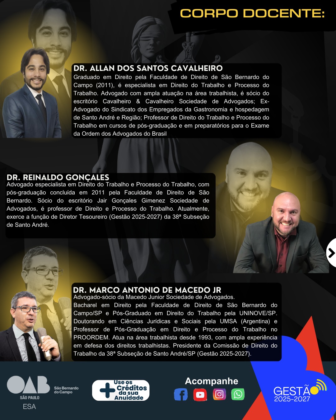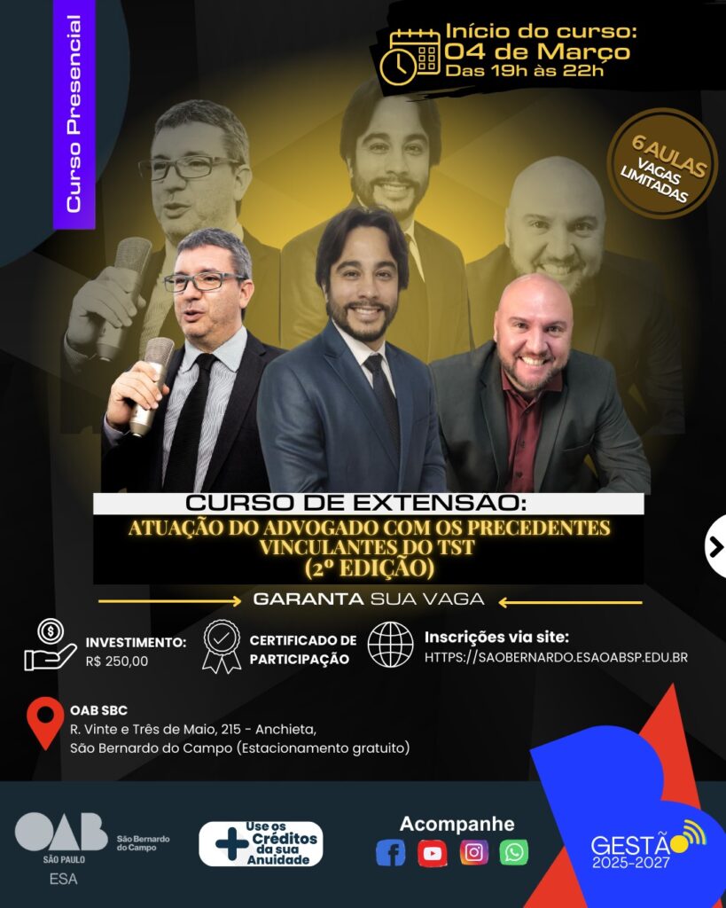 CURSO DE EXTENSAO: ATUAÇÃO DO ADVOGADO COM OS PRECEDENTES VINCULANTES DO TST