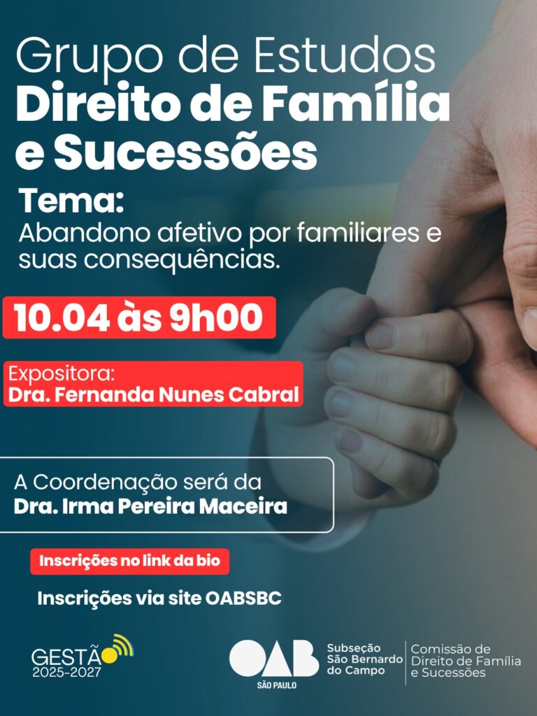 08 abr Grupo de Estudos Direito de Família e Sucessões Posted at 08:33h in Eventos, Principais by oab 0 Likes Inscrever-se